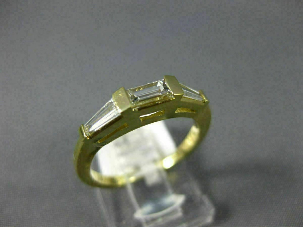 ESTATE 14KT YELLOW GOLD ANNIVERSARY RING. 3D THREE STONE DESIGN. BAGUETTE CUT. DIAMONDS ARE F/G COLOR, VVS CLARITY .35 CARATS. MEASURES 3MM WIDE. RING SIZE 5.50. CAN BE SIZED BY OUR MASTER JEWELER UPON REQUEST. WRITTEN APPRAISAL AVAILABLE. COMES IN A PRESENTABLE GIFT BOX.
