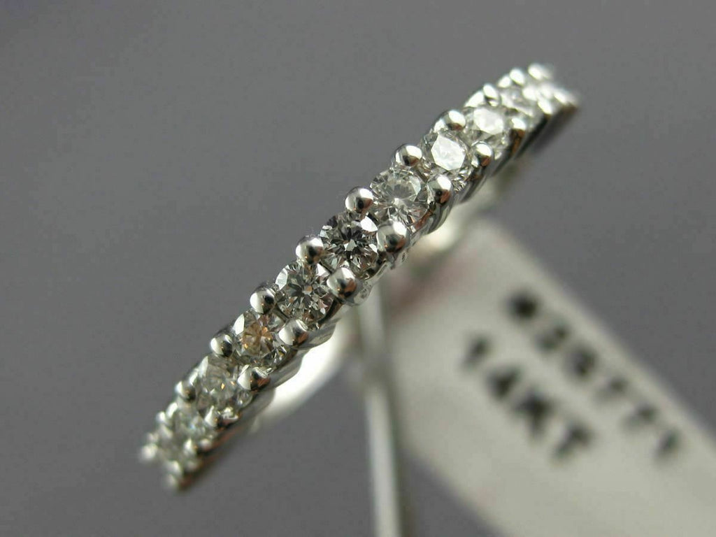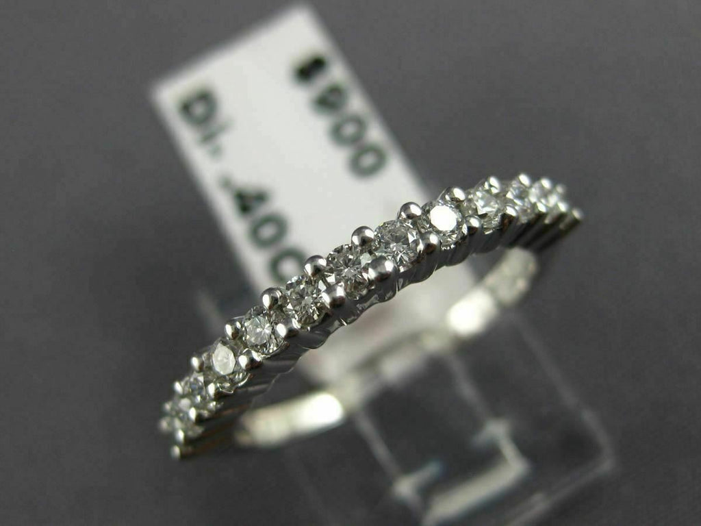 ESTATE 14KT WHITE GOLD WEDDING ANNIVERSARY RING. 3D CLASSIC SEMI ETERNITY SHARE PRONG DESIGN. DIAMONDS ARE F/G COLOR, VVS/VS CLARITY .40 CARATS. MEASURES 2.5MM WIDE. RING SIZE 6.50. CAN BE SIZED BY OUR MASTER JEWELER UPON REQUEST. WRITTEN APPRAISAL AVAILABLE. COMES IN A PRESENTABLE GIFT BOX.