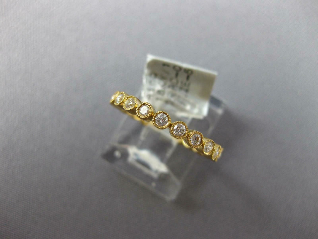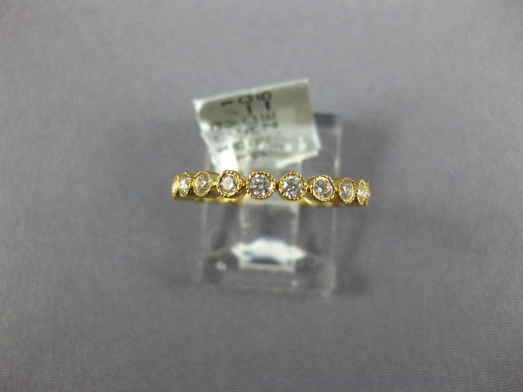 ESTATE 18KT YELLOW GOLD ANNIVERSARY RING. 3D FILIGREE MILGRAIN CLASSIC ETERNITYDESIGN. ROUNDDIAMONDS ARE F/G COLOR, VSSI CLARITY .47 CARATS. MEASURES 2mm WIDE. RING SIZE 5. CAN BE SIZED BY OUR MASTER JEWELER UPON REQUEST. WRITTEN APPRAISAL AVAILABLE. COMES IN A PRESENTABLE GIFT BOX.