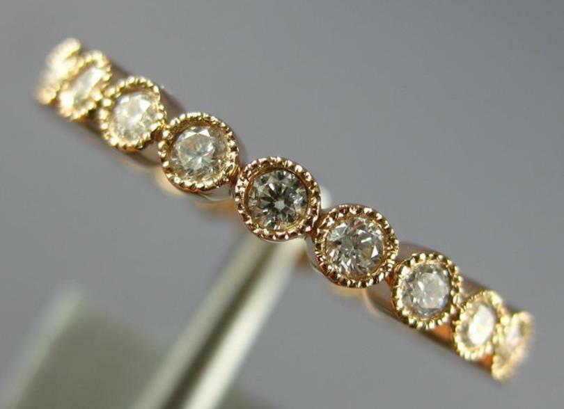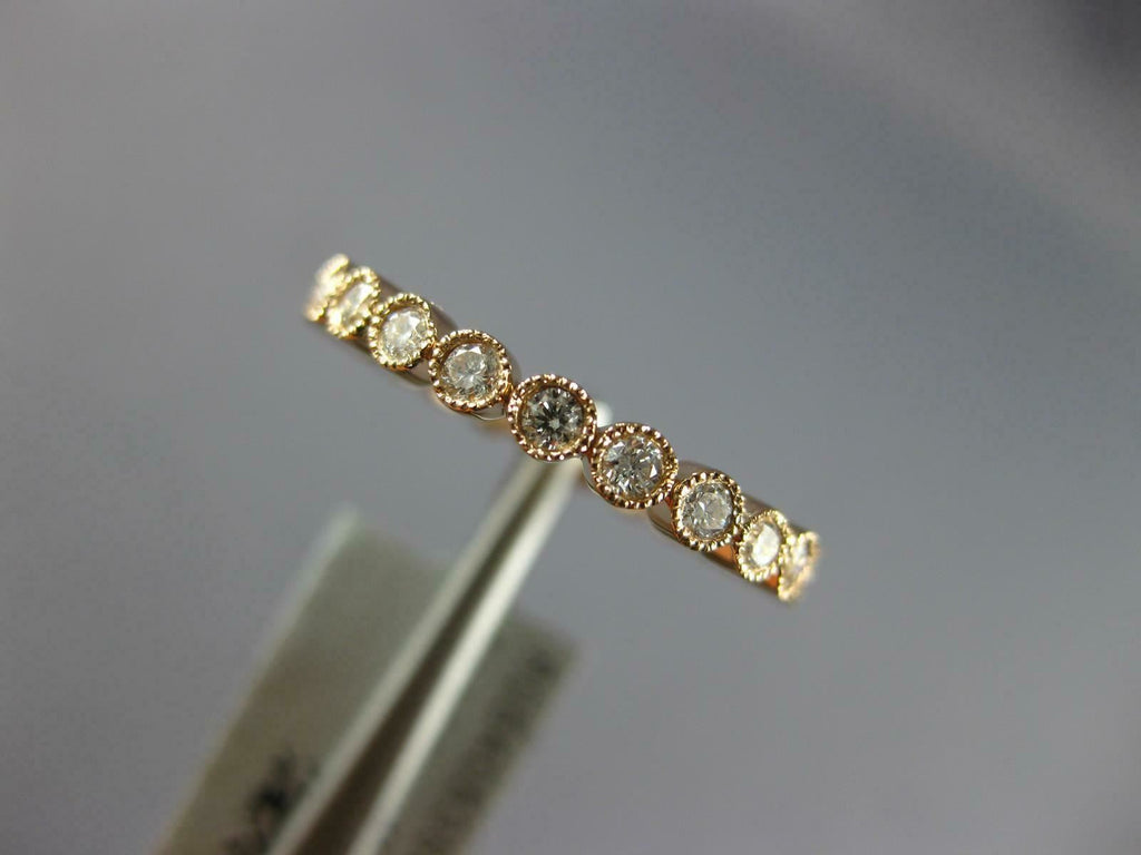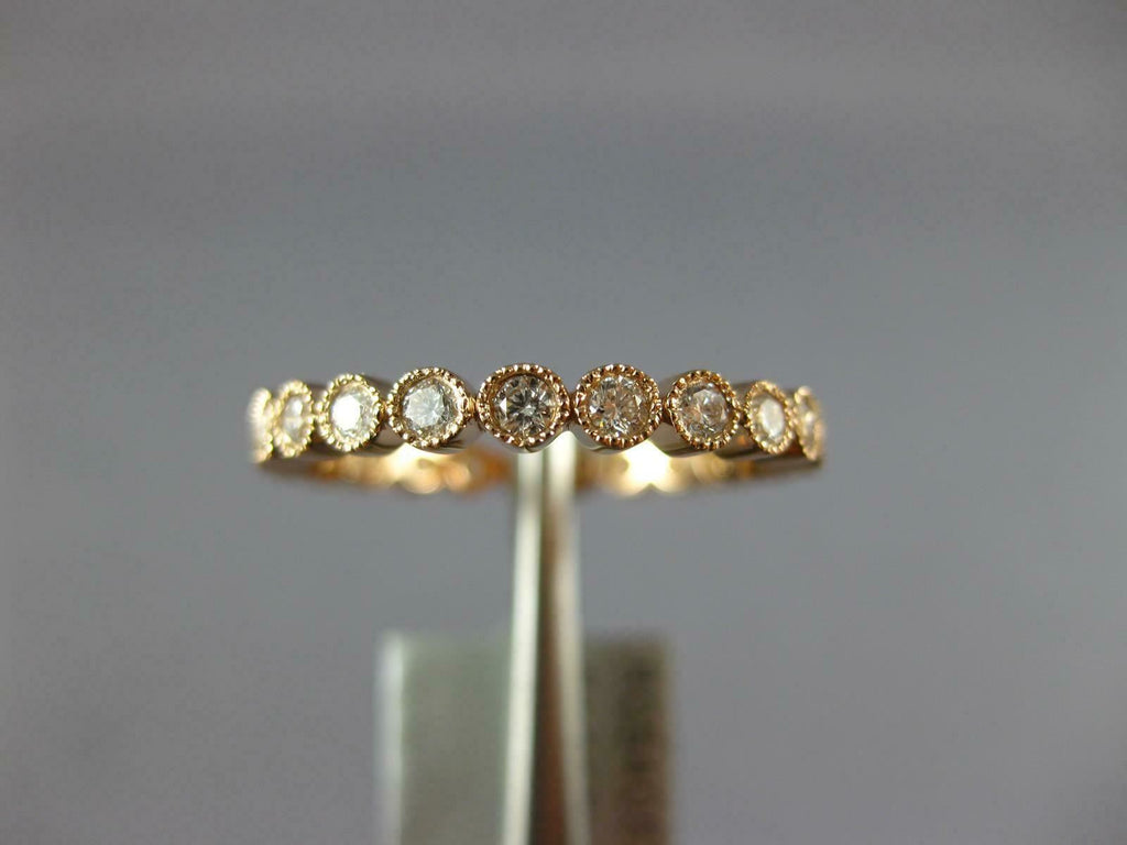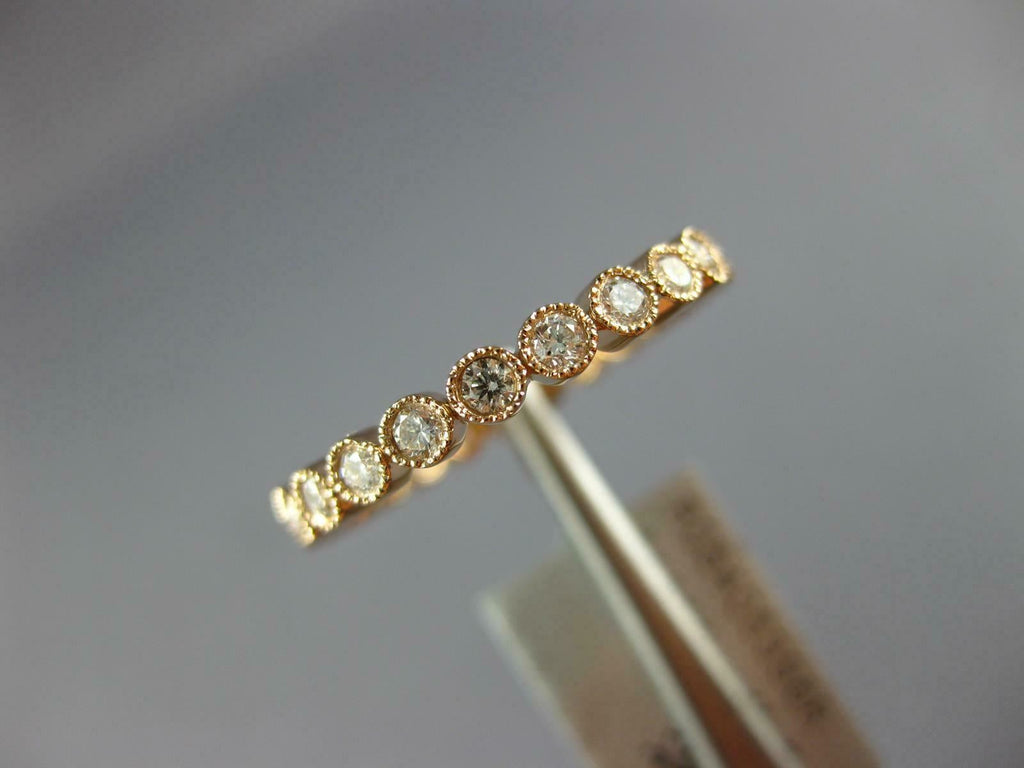 ESTATE 18KT ROSE GOLD WEDDING ANNIVERSARYRING. 3D CLASSIC ROUND FILIGREE MILGRAIN ETERNITYDESIGN. ROUNDDIAMONDS ARE F/G COLOR, VSSI CLARITY .50 CARATS. MEASURES 2mm WIDE. RING SIZE 6. CAN BE SIZED BY OUR MASTER JEWELER UPON REQUEST. WRITTEN APPRAISAL AVAILABLE. COMES IN A PRESENTABLE GIFT BOX.