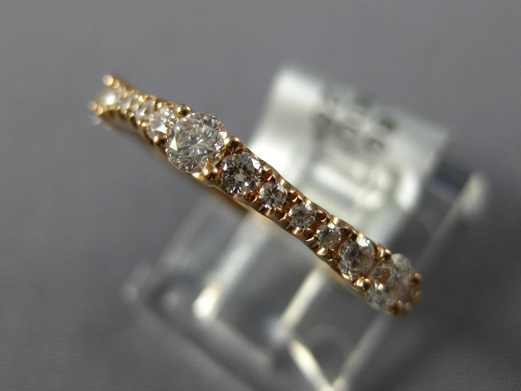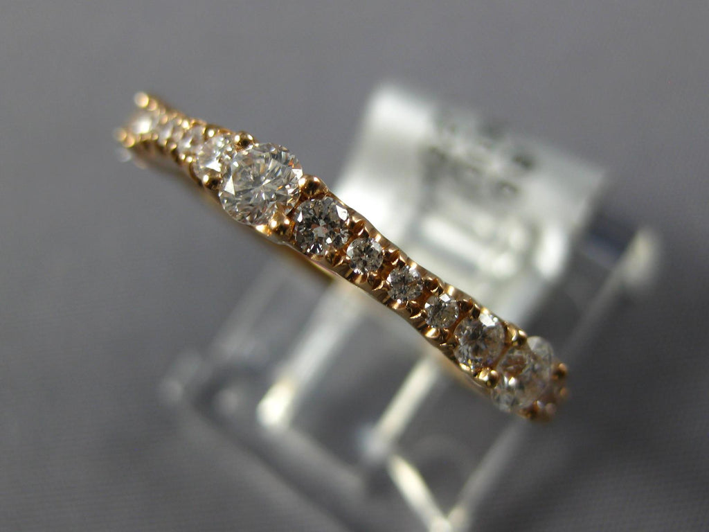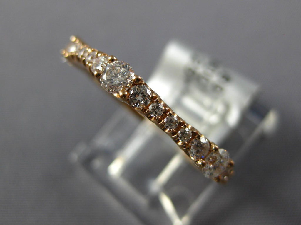 ESTATE 18KT ROSEGOLD WEDDING ANNIVERSARYRING. 3D THREE STONE LUCIDADESIGN. ROUND DIAMONDS ARE F/G COLOR, VS CLARITY 0.55CARATS.MEASURES 3mmWIDE. RING SIZE 7. CAN BE SIZED BY OUR MASTER JEWELER UPON REQUEST. WRITTEN APPRAISAL AVAILABLE. COMES IN A PRESENTABLE GIFT BOX.