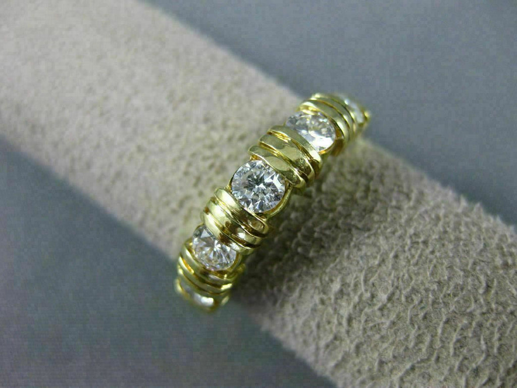 ESTATE 14KT YELLOW GOLD ANNIVERSARY RING. 3D 5 STONE CHANNEL DESIGN. DIAMONDS ARE F COLOR, VVS CLARITY .80 CARATS. MEASURES 4MM WIDE. RING SIZE 6.50. CAN BE SIZED BY OUR MASTER JEWELER UPON REQUEST. WRITTEN APPRAISAL AVAILABLE. COMES IN A PRESENTABLE GIFT BOX.