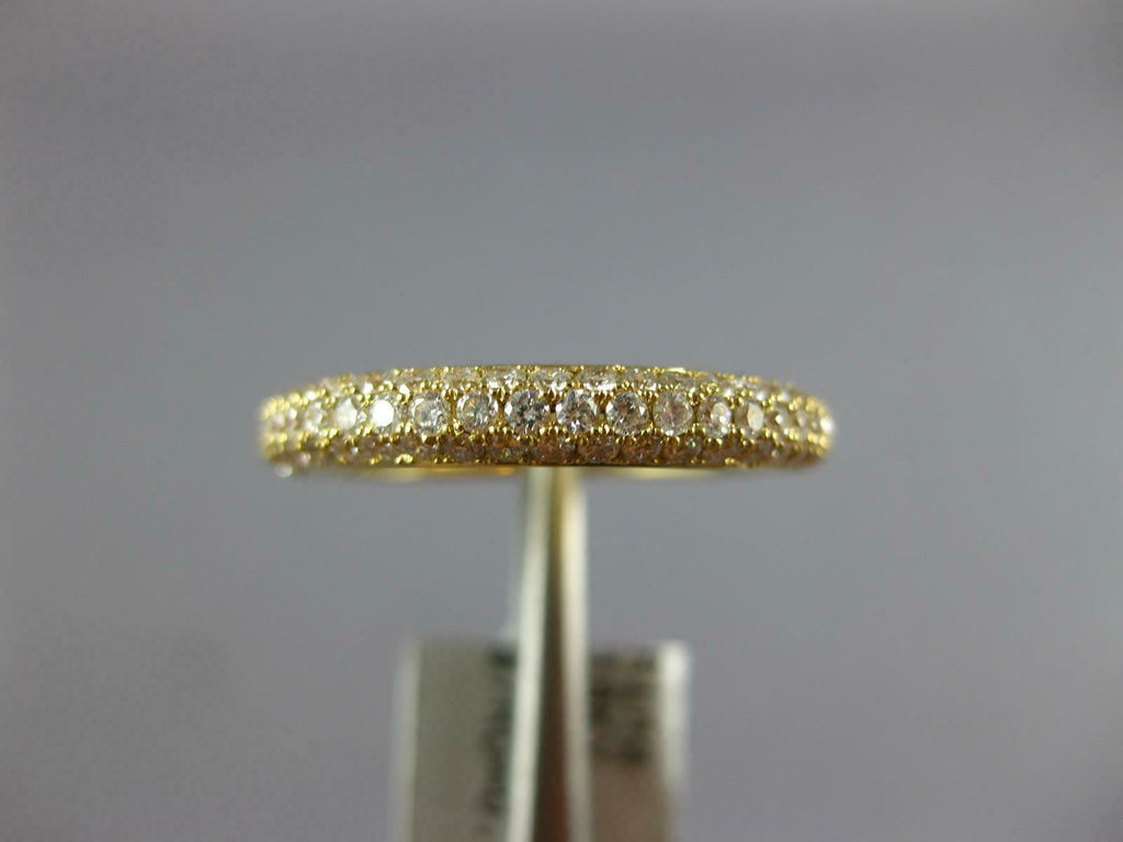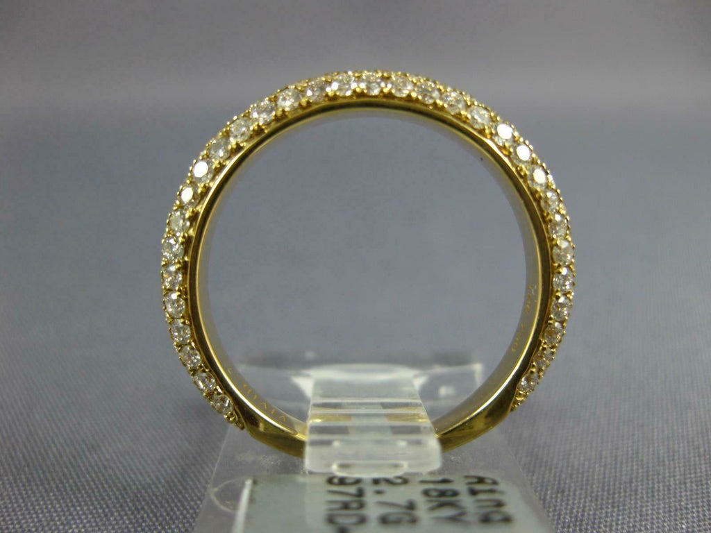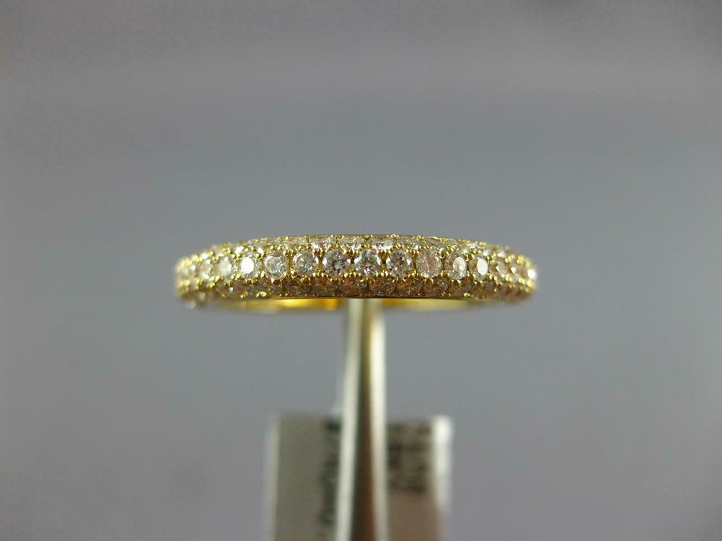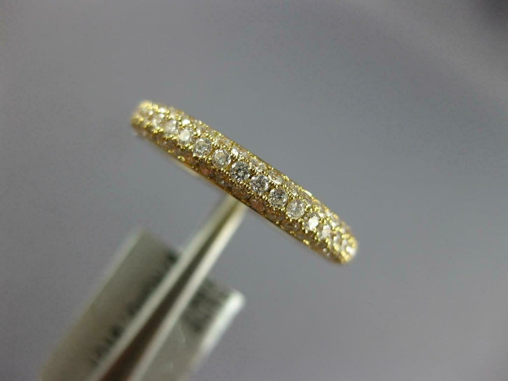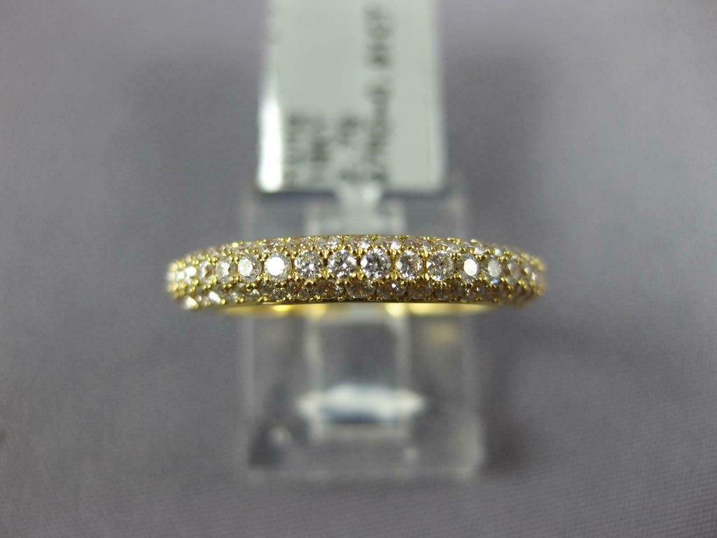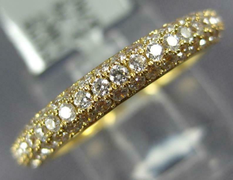 ESTATE 18KT YELLOW GOLD ANNIVERSARY RING. 3D CLASSIC MULTI ROW PAVE 3/4TH ETERNITYDESIGN.DIAMONDS ARE F/G COLOR, VSSI CLARITY .91 CARATS. MEASURES 3mm WIDE. RING SIZE 6.5. CAN BE SIZED BY OUR MASTER JEWELER UPON REQUEST. WRITTEN APPRAISAL AVAILABLE. COMES IN A PRESENTABLE GIFT BOX.