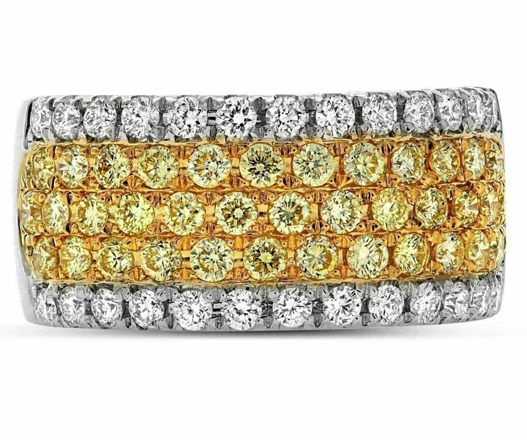 ESTATE LARGE 1.59CT WHITE & FANCY YELLOW DIAMOND 18K WHITE GOLD ANNIVERSARY RING