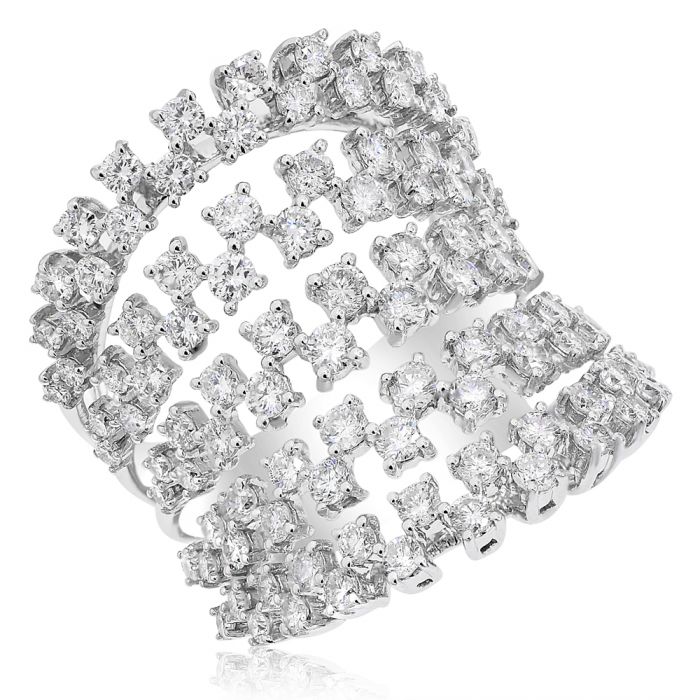 ESTATE LARGE14KT WHITEGOLD ANNIVERSARYRING. 3D MULTI ROW ETOILEDESIGN. DIAMONDS ARE F/G COLOR, VSSI CLARITY 3.02CARATS. RING SIZE 7. CAN BE SIZED BY OUR MASTER JEWELER UPON REQUEST. WRITTEN APPRAISAL AVAILABLE. COMES IN A PRESENTABLE GIFT BOX.