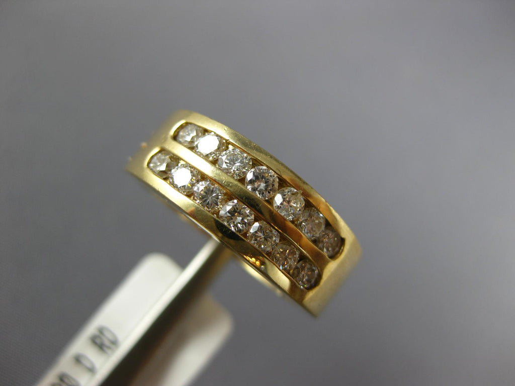 ESTATE WIDE 14KT YELLOW GOLD WEDDING ANNIVERSARY RING. 3D TWO ROW CHANNELDESIGN. ROUND DIAMONDS ARE F/G COLOR, VSSI CLARITY 0.80 CARATS. MEASURES 7mm WIDE. RING SIZE IS 6.25. CAN BE SIZED BY OUR MASTER JEWELER UPON REQUEST. WRITTEN APPRAISAL AVAILABLE. COMES IN A PRESENTABLE GIFT BOX.