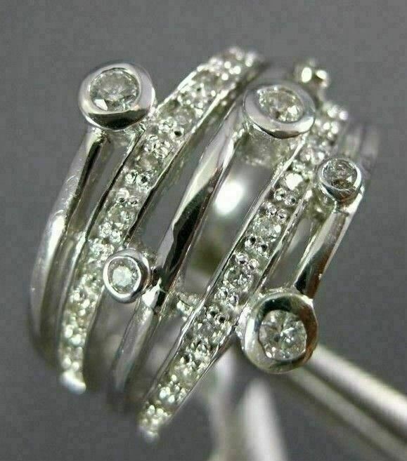 ESTATE WIDE .40CT DIAMOND 14KT WHITE GOLD MULTI ROW CRISS CROSS ANNIVERSARY RING