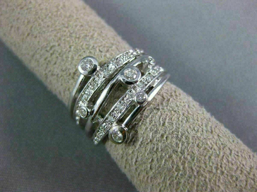 ESTATE WIDE 14KT WHITE GOLD WEDDING ANNIVERSARYRING. 3D MULTI ROW ETOILE SEMI ETERNITY CRISS CROSSDESIGN. DIAMONDS ARE F/GCOLOR, VSSI CLARITY .40 CARATS. MEASURES 13mm WIDE. RING SIZE 5.75. CAN BE SIZED BY OUR MASTER JEWELER UPON REQUEST. WRITTEN APPRAISAL AVAILABLE. COMES IN A PRESENTABLE GIFT BOX.