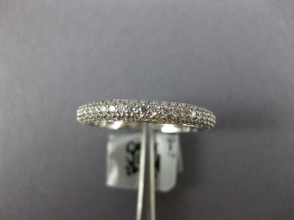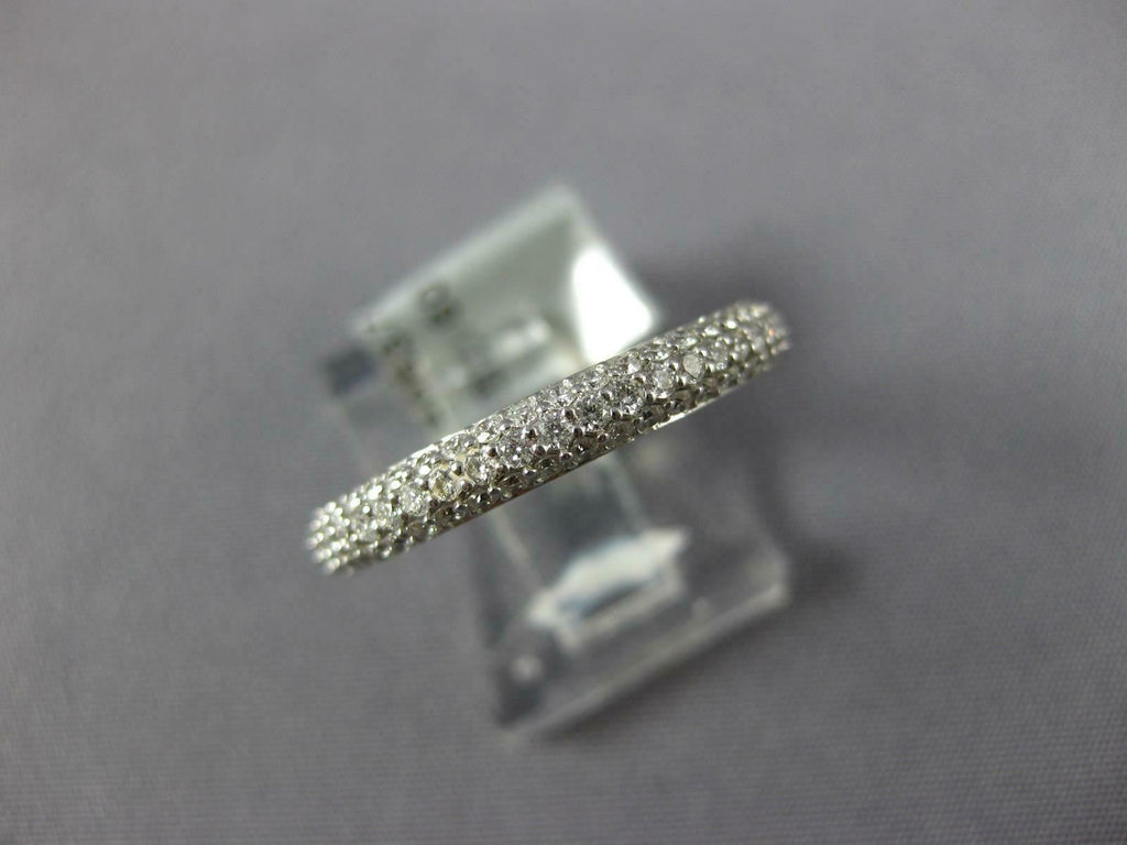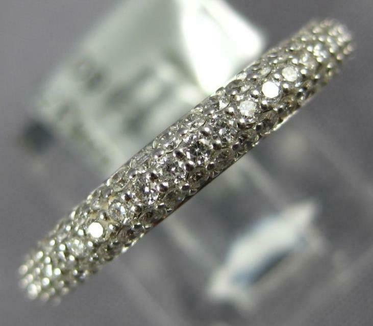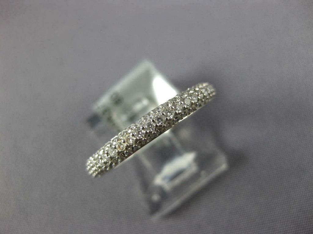 ESTATE WIDE18KT WHITE GOLD WEDDING ANNIVERSARYRING. 3D MULTI ROW PAVE SEMI ETERNITYDESIGN.DIAMONDS ARE F/G COLOR, VSSI CLARITY .48 CARATS. MEASURES 3mm WIDE. RING SIZE 7. CAN BE SIZED BY OUR MASTER JEWELER UPON REQUEST. WRITTEN APPRAISAL AVAILABLE. COMES IN A PRESENTABLE GIFT BOX.