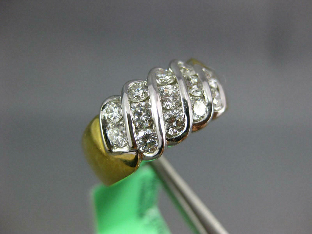 ESTATE WIDE 18KT WHITE ANDYELLOW GOLD WEDDING ANNIVERSARYRING. 3D MULTI ROWDESIGN. DIAMONDSARE F/G COLOR, VSSI CLARITY .75 CARATS.MEASURES 9mm WIDE. RING SIZE 7. CAN BE SIZED BY OUR MASTER JEWELER UPON REQUEST. WRITTEN APPRAISAL AVAILABLE. COMES IN A PRESENTABLE GIFT BOX.