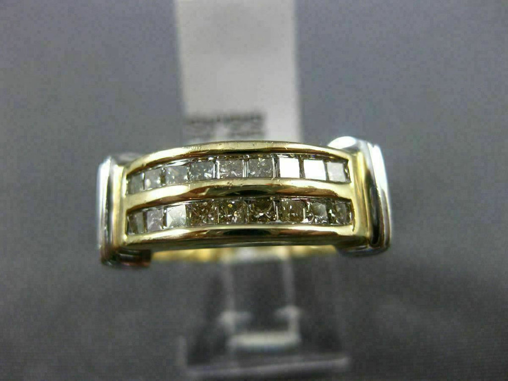 ESTATE WIDE .75CT FANCY YELLOW DIAMOND 14KT TWO TONE GOLD 2 ROW ANNIVERSARY RING