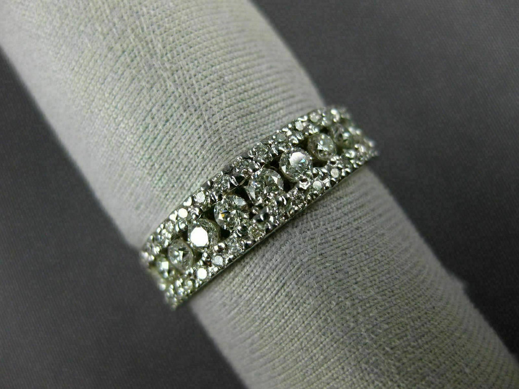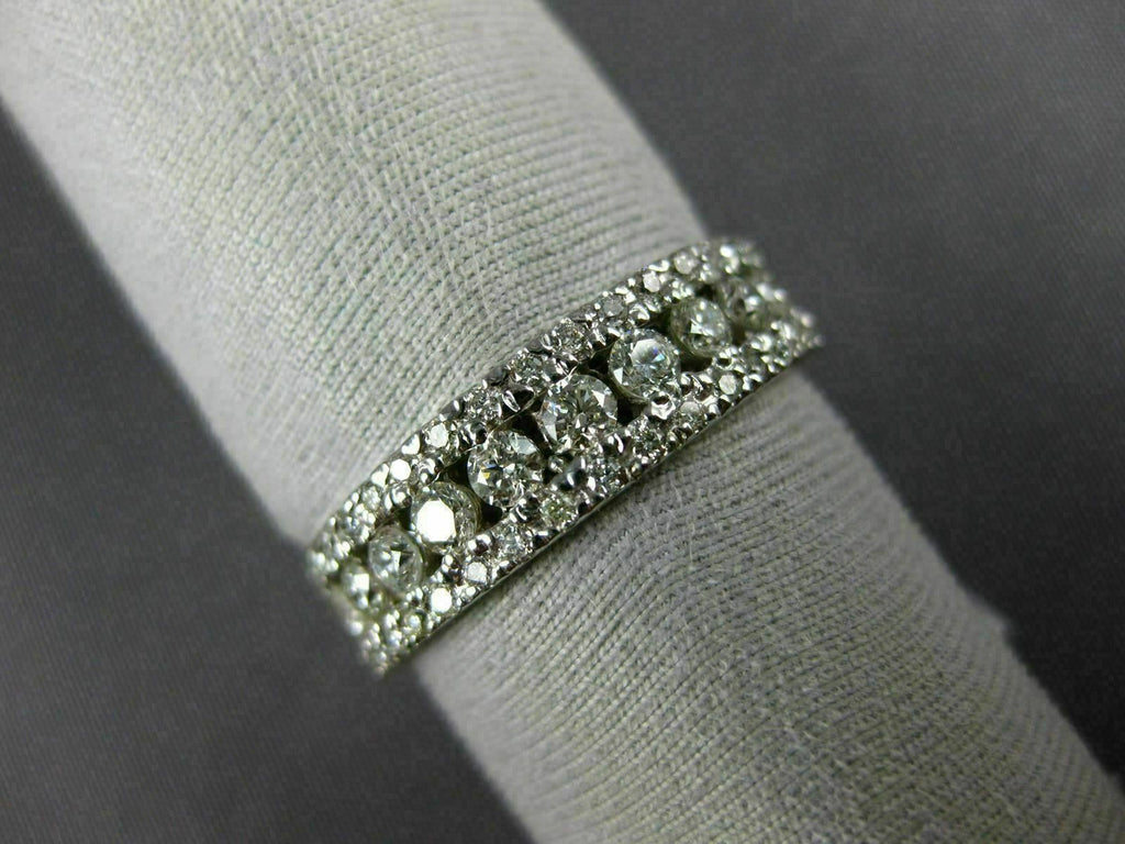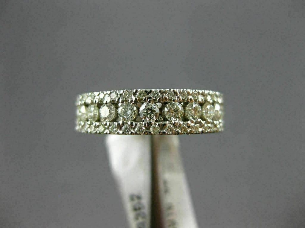 ESTATE WIDE .86CT DIAMOND 14K WHITE GOLD 3D 3 ROW ROUND WEDDING ANNIVERSARY RING