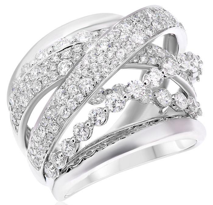 LARGE 3.22CT DIAMOND 18KT WHITE GOLD 3D MULTI ROW CRISS CROSS ANNIVERSARY RING
