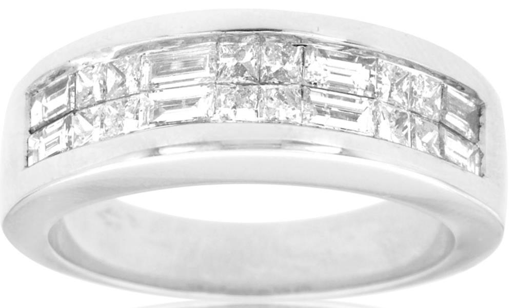 WIDE 1.0CT DIAMOND 14K WHITE GOLD PRINCESS & BAGUETTE INVISIBLE ANNIVERSARY RING