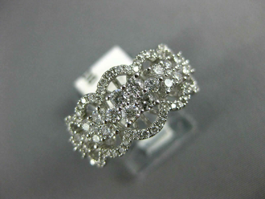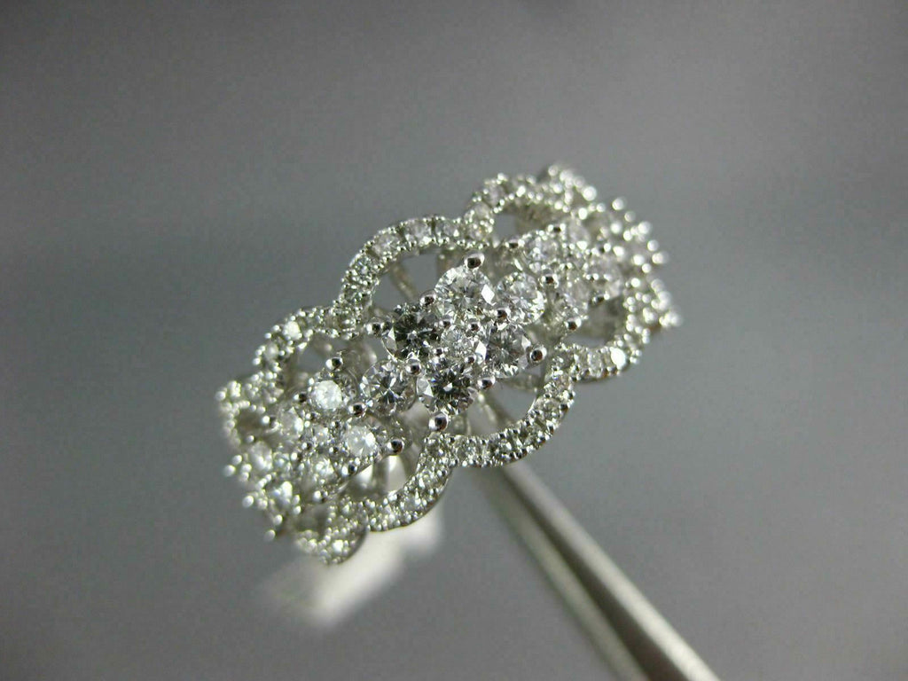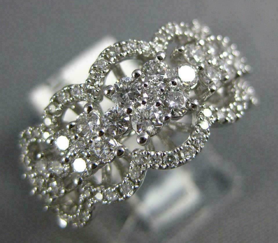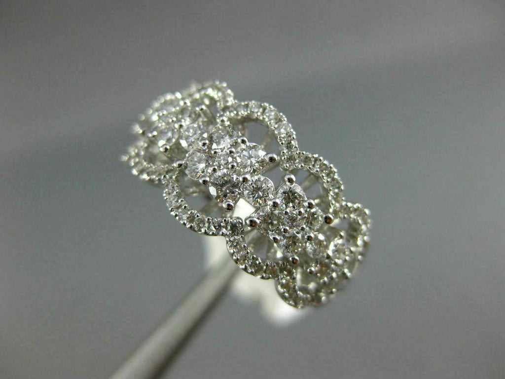 WIDE 1.0CT DIAMOND 14KT WHITE GOLD 3D FLOWER OPEN FILIGREE ANNIVERSARY RING