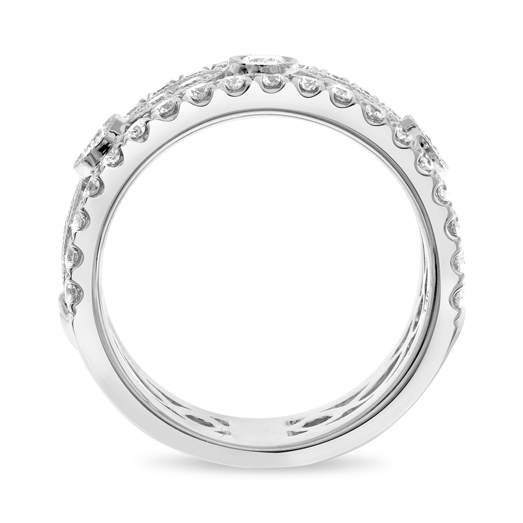 WIDE 1.14CT DIAMOND 14KT WHITE GOLD 3D ROUND & MARQUISE SHAPE ANNIVERSARY RING