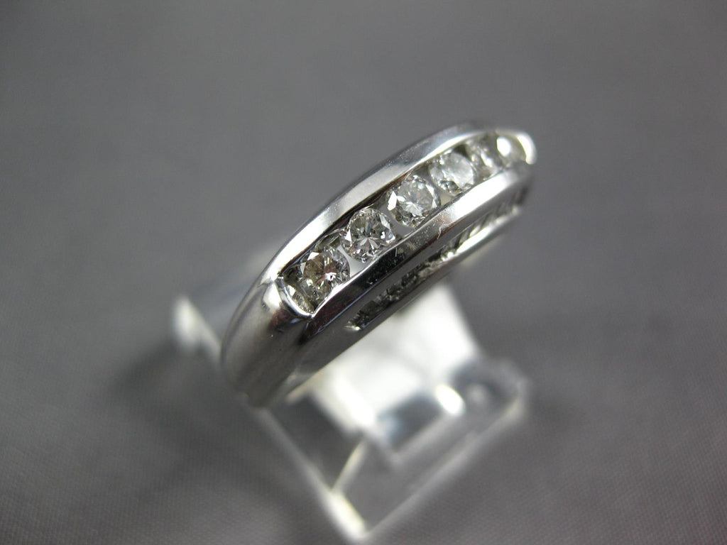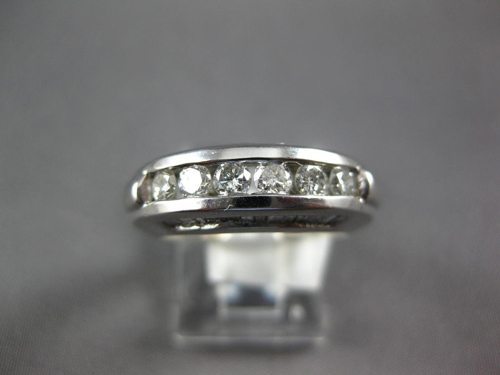 WIDE 14KT WHITEGOLD WEDDING ANNIVERSARYRING. 3D CHANNELDESIGN. ROUND AND BAGUETTEDIAMONDS ARE F/G COLOR, VSSI CLARITY 1.26 CARATS.MEASURES 6.5mm WIDE. RING SIZE 6.75. CAN BE SIZED BY OUR MASTER JEWELER UPON REQUEST. WRITTEN APPRAISAL AVAILABLE. COMES IN A PRESENTABLE GIFT BOX.