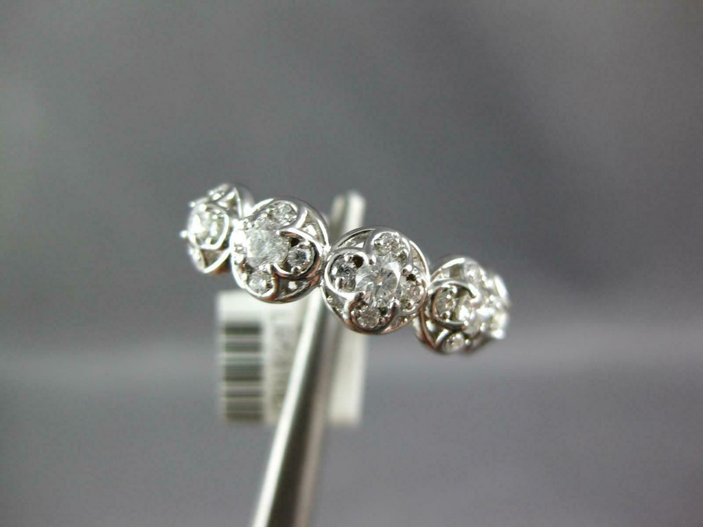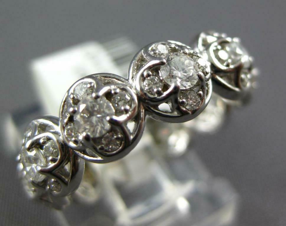 WIDE14KT WHITEGOLD WEDDING ANNIVERSARYRING. 3D CIRCULAR CLUSTER FLOWER ETERNITYDESIGN. DIAMONDS ARE F/G COLOR, VSSI CLARITY 1.30CARATS. MEASURES 6mm WIDE. RING SIZE 6.75. CAN BE SIZED BY OUR MASTER JEWELER UPON REQUEST. WRITTEN APPRAISAL AVAILABLE. COMES IN A PRESENTABLE GIFT BOX.