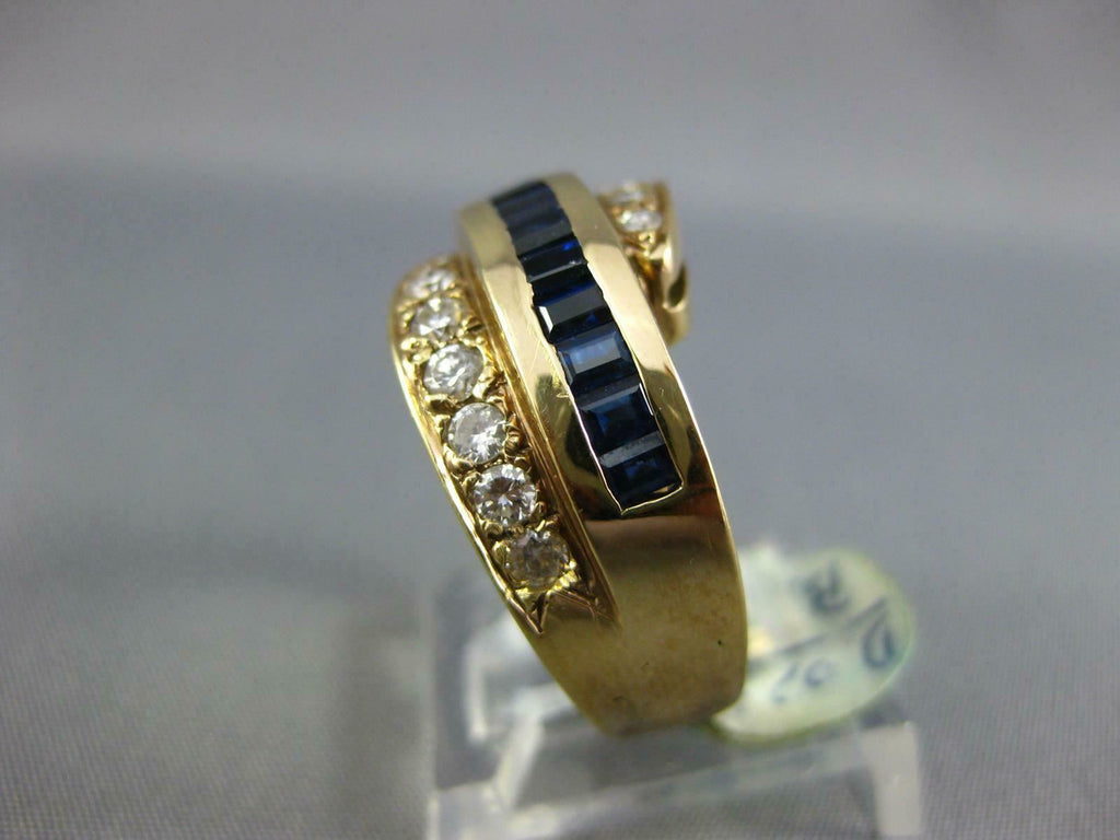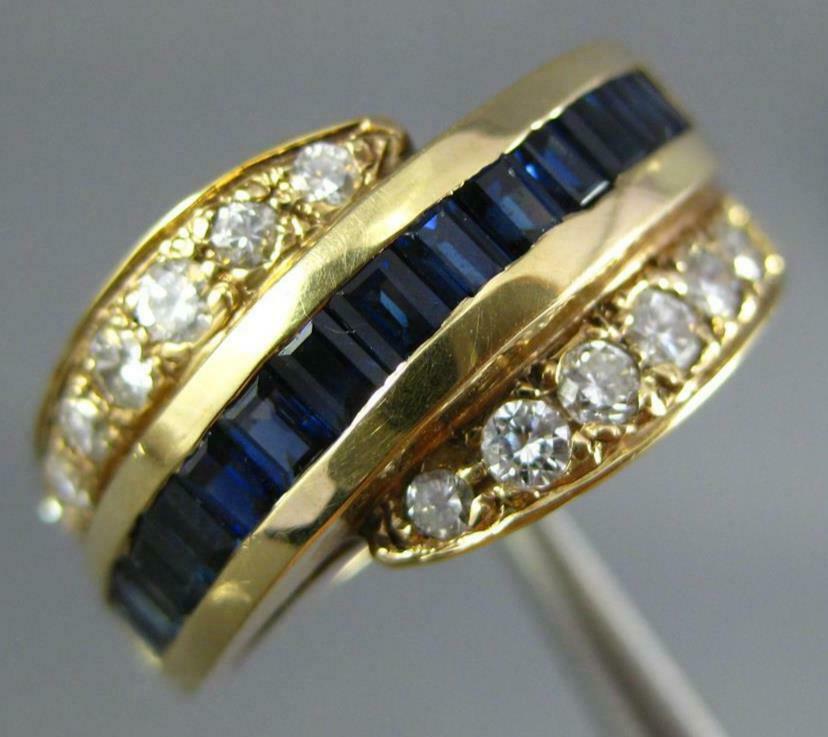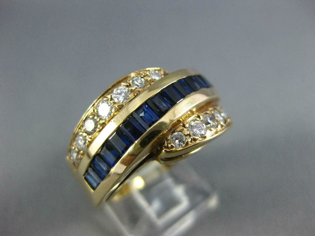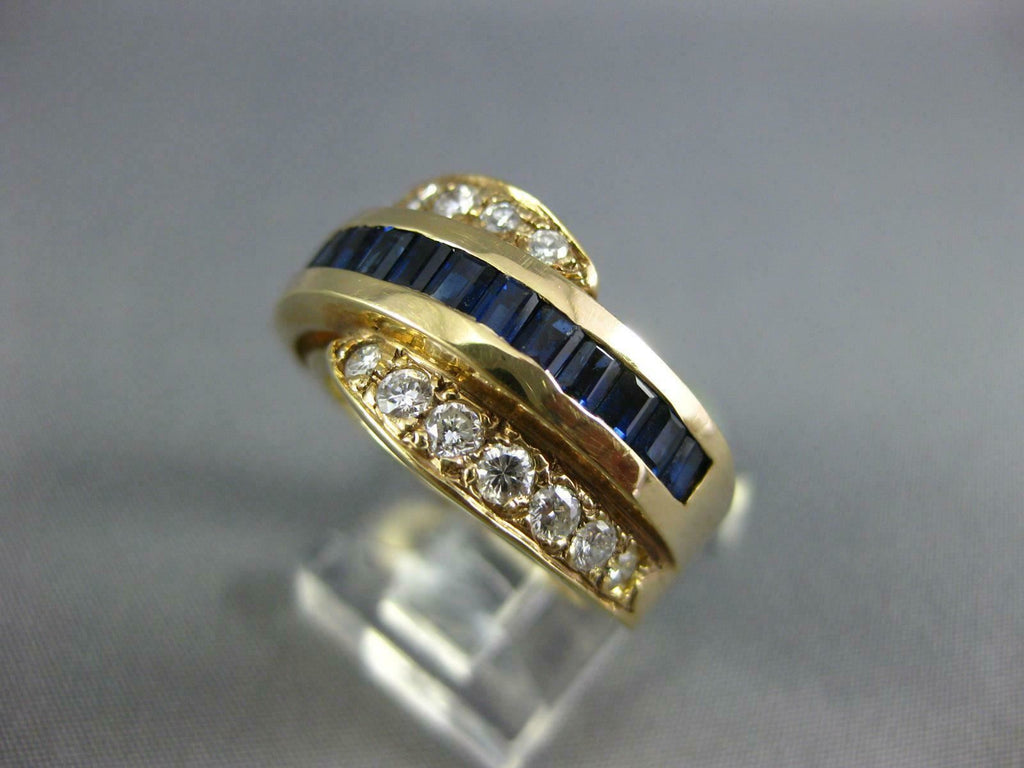 WIDE 14KT YELLOWGOLD ANNIVERSARY RING. 3D CLASSICDESIGN. ROUNDDIAMONDS AREF/G COLOR, VSSI CLARITY .25CARATS. AAA BAGUETTE CUTSAPPHIRES ARE1.25 CARATS.MEASURES 12mm WIDE. RING SIZE 6.5. CAN BE SIZED BY OUR MASTER JEWELER UPON REQUEST. WRITTEN APPRAISAL AVAILABLE. COMES IN A PRESENTABLE GIFT BOX.