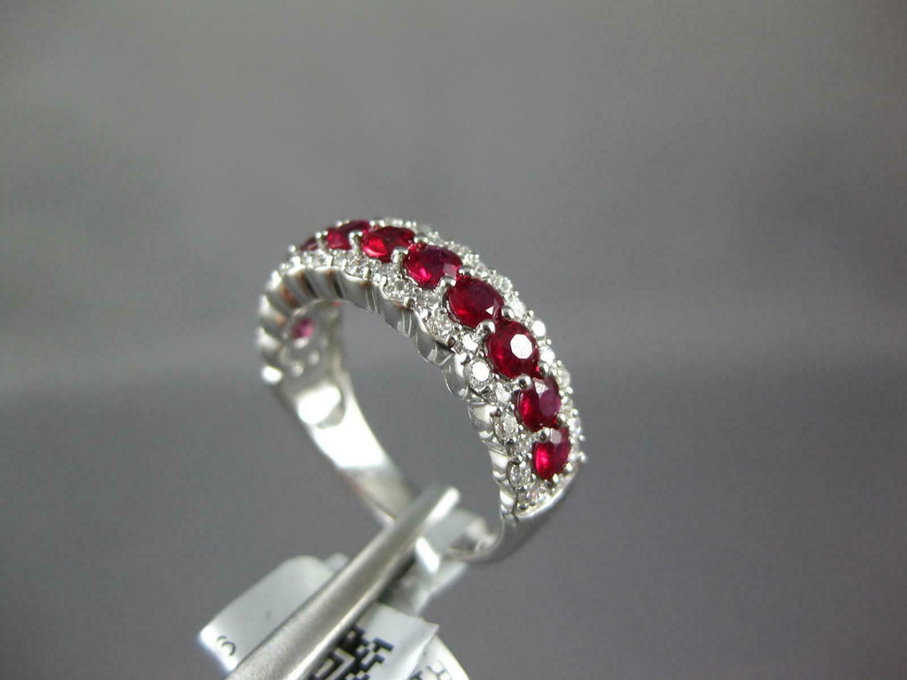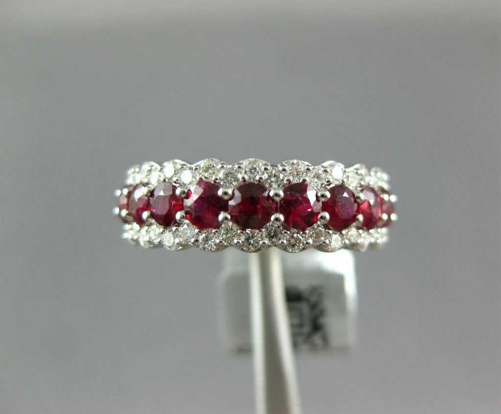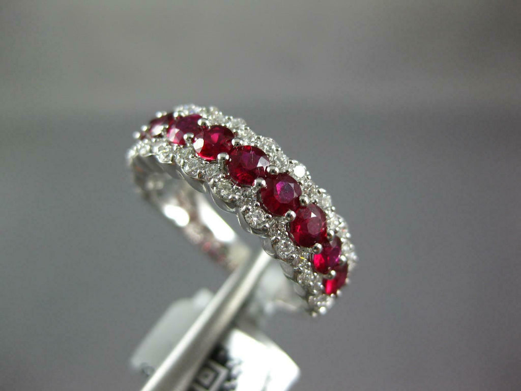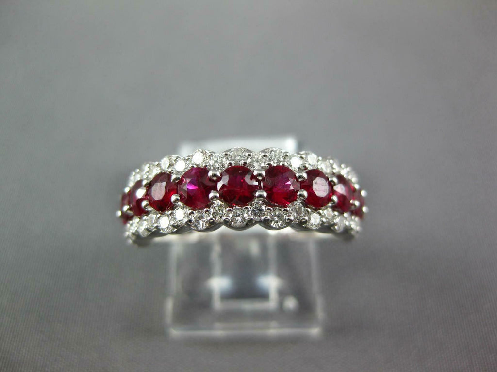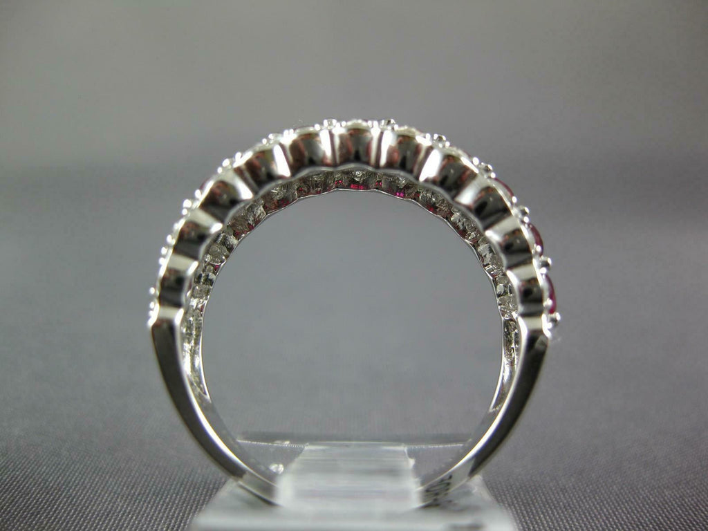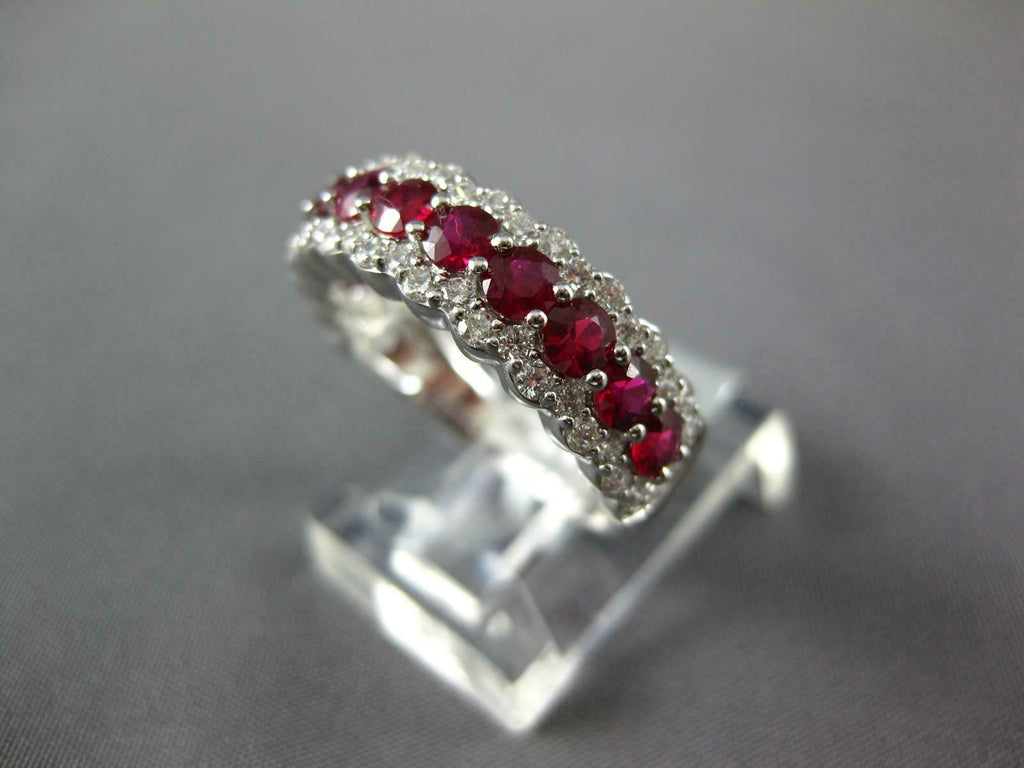 WIDE 1.70CT DIAMOND AAA RUBY 18K WHITE GOLD 3 ROW SEMI ETERNITY ANNIVERSARY RING