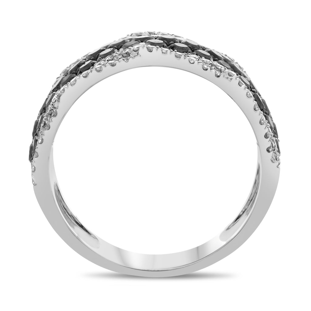 WIDE 1.79CT WHITE & BLACK DIAMOND 18KT WHITE GOLD 3D MULTI ROW ANNIVERSARY RING