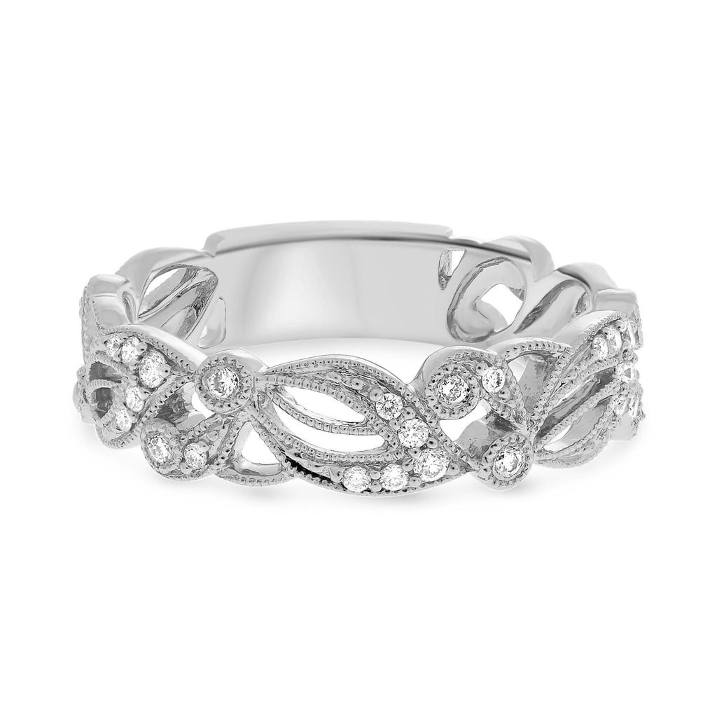 WIDE .14CT DIAMOND 14KT WHITE GOLD 3D MULTI LEAF OPEN FILIGREE ANNIVERSARY RING