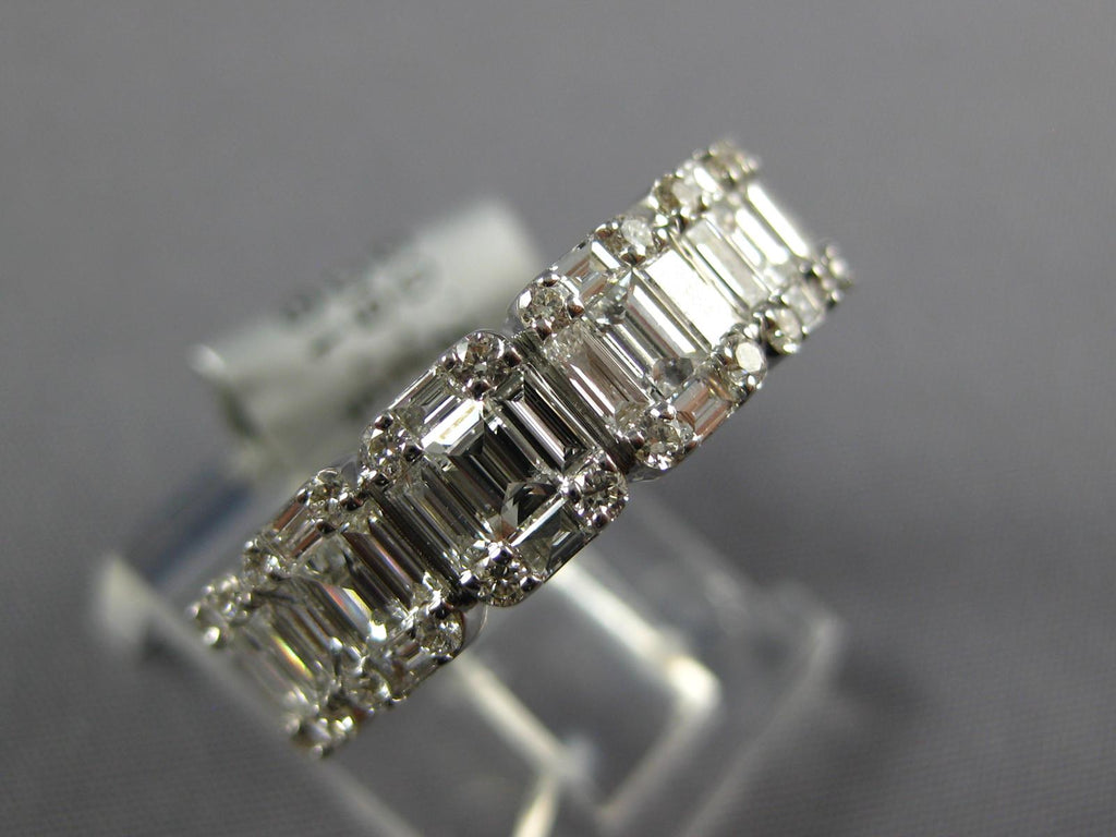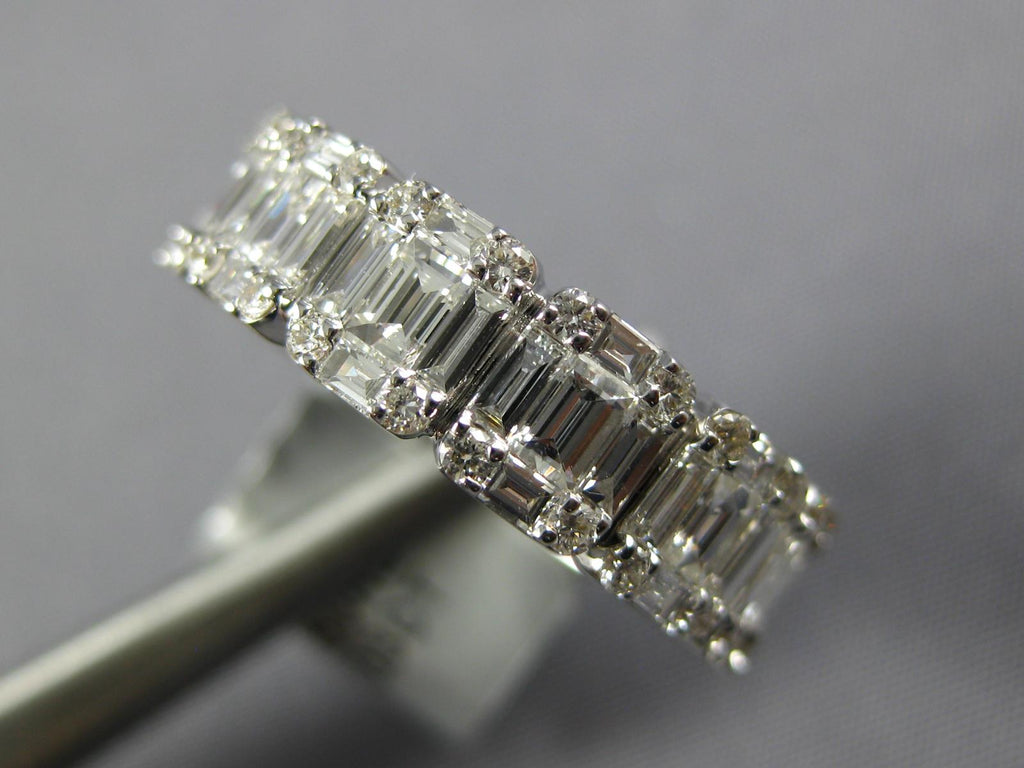 WIDE 18KT WHITEGOLD ANNIVERSARYRING. 3D INVISIBLE SQUARE ETERNITYDESIGN. ROUND AND BAGUETTEDIAMONDS ARE F/G COLOR, VS CLARITY 2.53CARATS.MEASURES 6mmWIDE. RING SIZE 7.5. CAN BE SIZED BY OUR MASTER JEWELER UPON REQUEST. WRITTEN APPRAISAL AVAILABLE. COMES IN A PRESENTABLE GIFT BOX.