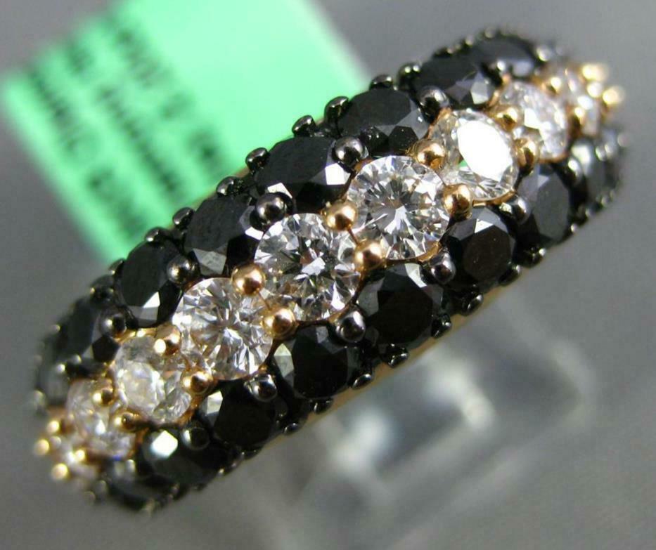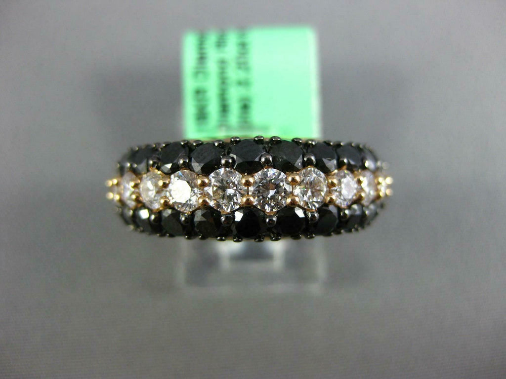 WIDE 3.40CT WHITE & BLACK DIAMOND 18KT ROSE GOLD 3 ROW WEDDING ANNIVERSARY RING