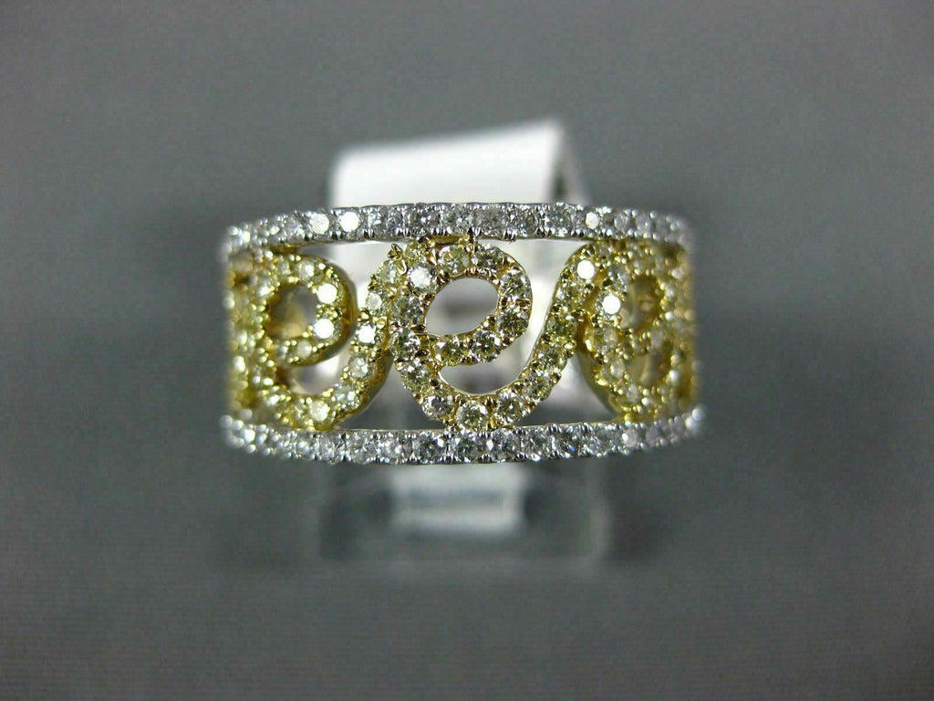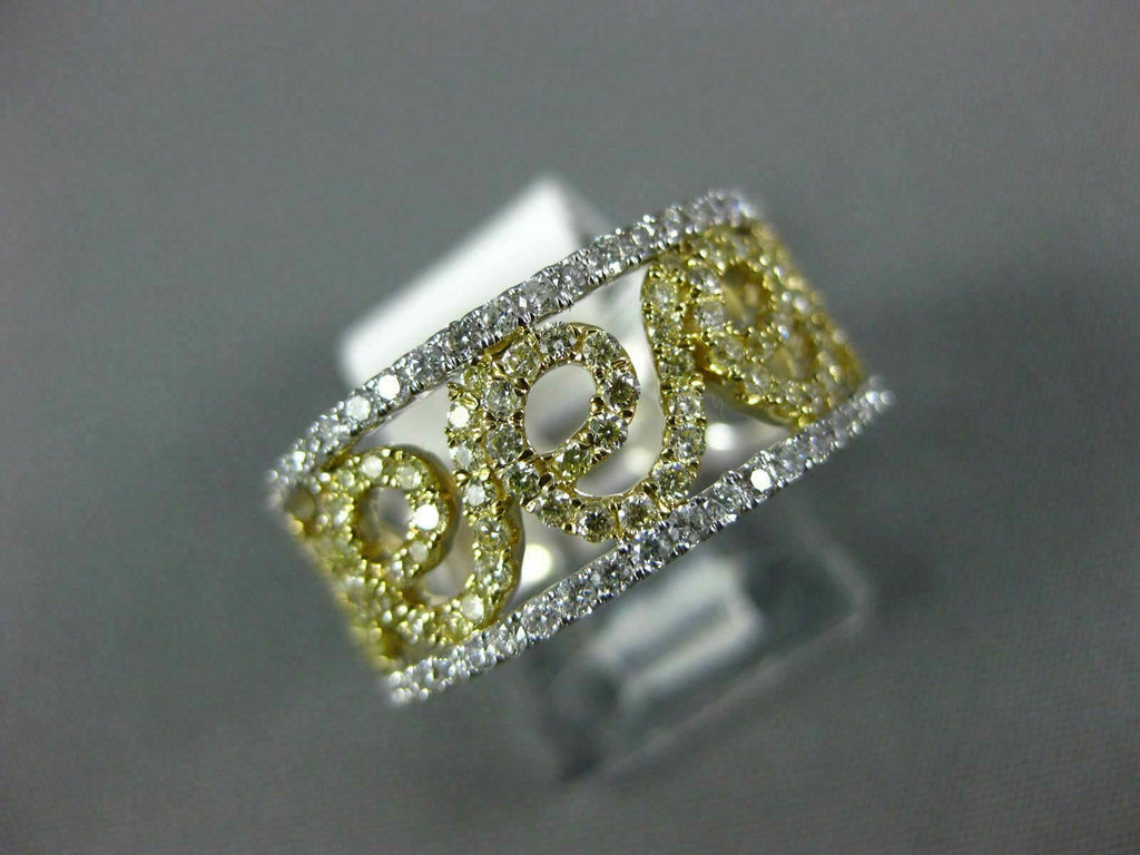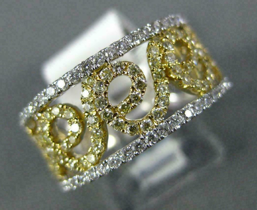 WIDE .92CT WHITE & FANCY YELLOW DIAMOND 14K WHITE GOLD FILIGREE ANNIVERSARY RING