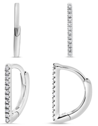 .05CT DIAMOND 14K WHITE GOLD CLASSIC ROUND BAR LEVERBACK HUGGIE HANGING EARRINGS