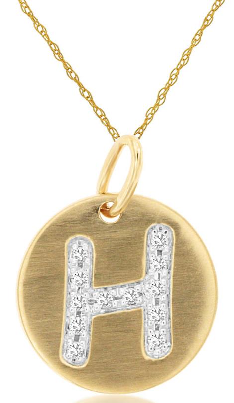 0.06CT DIAMOND 14KT YELLOW GOLD MATTE & SHINY H INITAL CIRCULAR FLOATING PENDANT