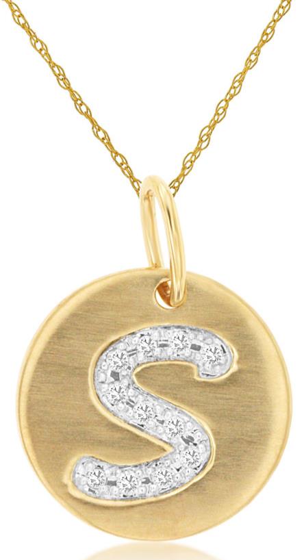0.06CT DIAMOND 14KT YELLOW GOLD MATTE & SHINY S INITAL CIRCULAR FLOATING PENDANT
