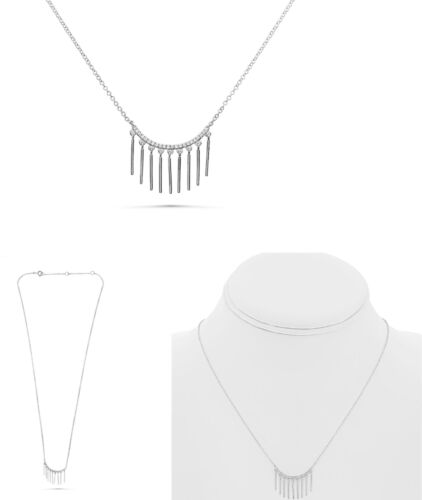 .07CT DIAMOND 14KT WHITE GOLD 3D ROUND MULTI BAR CHANDELIER HAPPY FACE NECKLACE