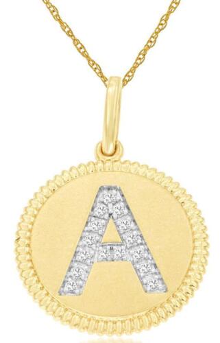 .07CT DIAMOND 14KT YELLOW GOLD 3D CLASSIC A INITIAL CIRCULAR FLOATING PENDANT