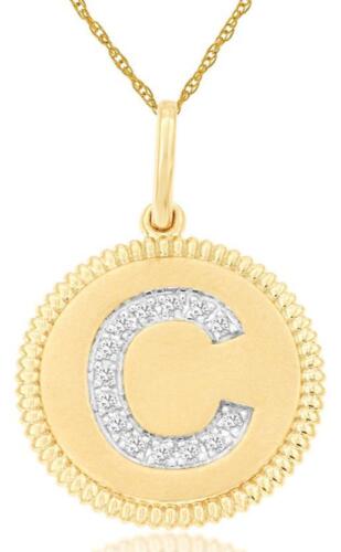 .07CT DIAMOND 14KT YELLOW GOLD ROUND CLASSIC C INITIAL FILIGREE FLOATING PENDANT
