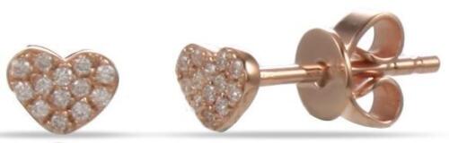 .08CT DIAMOND 14K ROSE GOLD 3D ROUND CLASSIC PAVE HEART SHAPE LOVE STUD EARRINGS