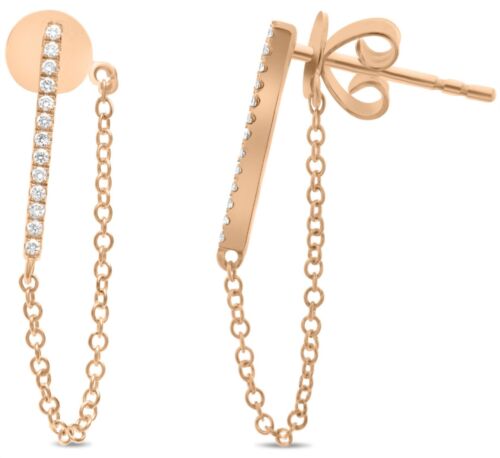 .08CT DIAMOND 14KT ROSE GOLD 3D ROUND CLASSIC DOUBLE SIDED BAR HANGING EARRINGS