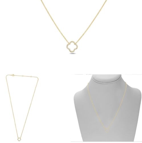 .08CT DIAMOND 14KT YELLOW GOLD 3D CLASSIC OPEN FLOWER ADJUSTABLE LOVE NECKLACE