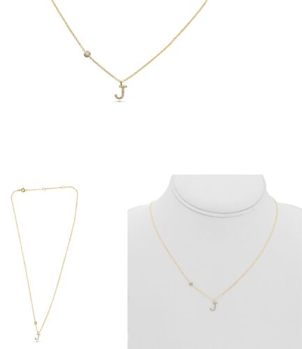 14KT YELLOW GOLD FUN NECKLACE. 3D CLASSIC INITIAL J SOLITAIRE BY THE YARD ADJUSTABLE DESIGN. ROUND DIAMONDS ARE F/G COLOR, VS CLARITY .08 CARATS. 18" INCHES LONG.