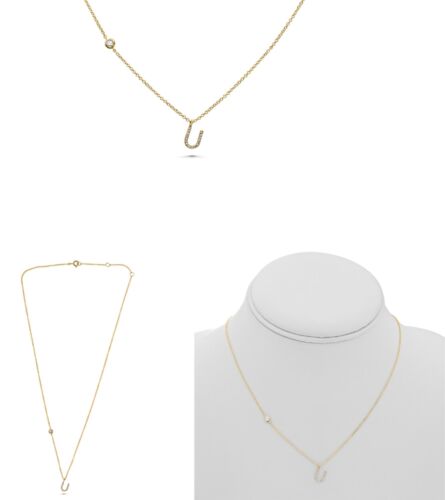 .08CT DIAMOND 14KT YELLOW GOLD 3D INITIAL U SOLITAIRE BY THE YARD FUN NECKLACE
