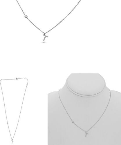 .09CT DIAMOND 14KT WHITE GOLD ROUND INITIAL T SOLITAIRE BY THE YARD FUN NECKLACE