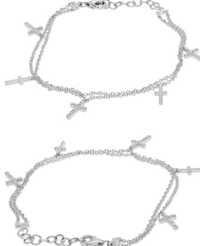 14KT WHITE GOLD FUN BRACELET. 3D CLASSIC MULTI CROSS BY THE YARD DOUBLE STRAND ADJUSTABLE DESIGN. ROUND DIAMONDS ARE F/G COLOR, VS CLARITY .11 CARATS. 7" INCHES LONG. WRITTEN APPRAISAL AVAILABLE. COMES IN A PRESENTABLE GIFT BOX.