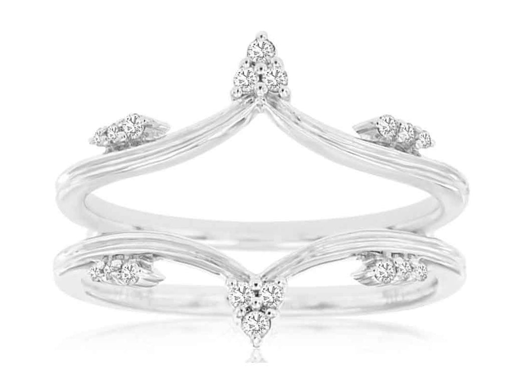 .12CT DIAMOND 14KT WHITE GOLD 3D CLASSIC ROUND V SHAPE INSERT ANNIVERSARY RING