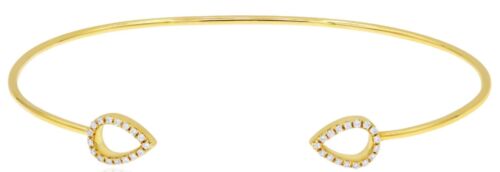 .13CT DIAMOND 14KT YELLOW GOLD 3D DOUBLE TEAR DROP LEAF FLEXIBLE BANGLE BRACELET