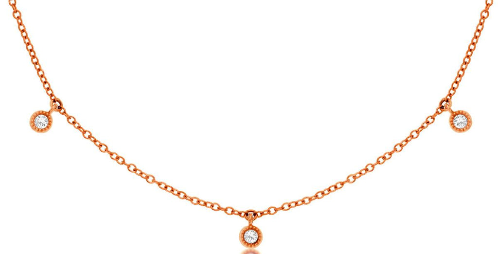 0.14CT DIAMOND 14KT ROSE GOLD 3D CLASSIC BEZEL FILIGREE BY THE YARD LOVE NECKLACE