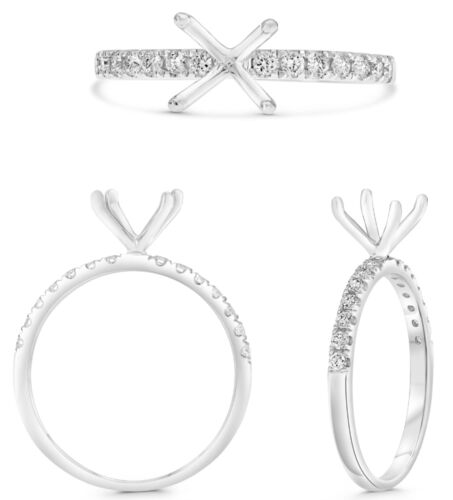 .22CT DIAMOND 14KT WHITE GOLD 3D ROUND 4 PRONG SEMI ETERNITY SEMI MOUNT RING