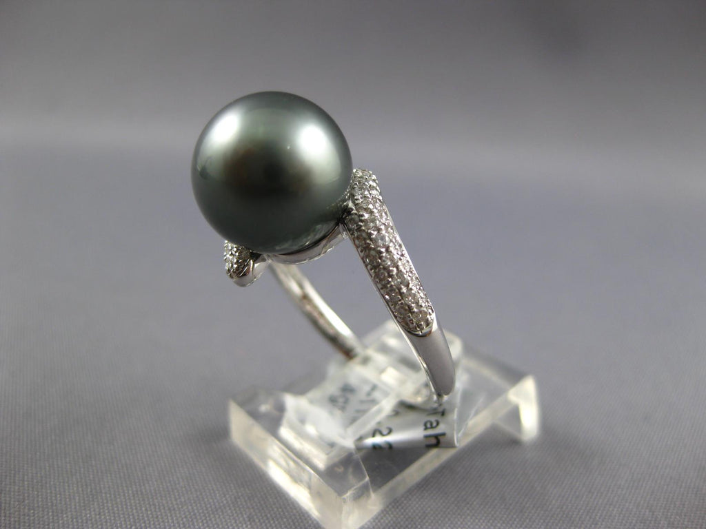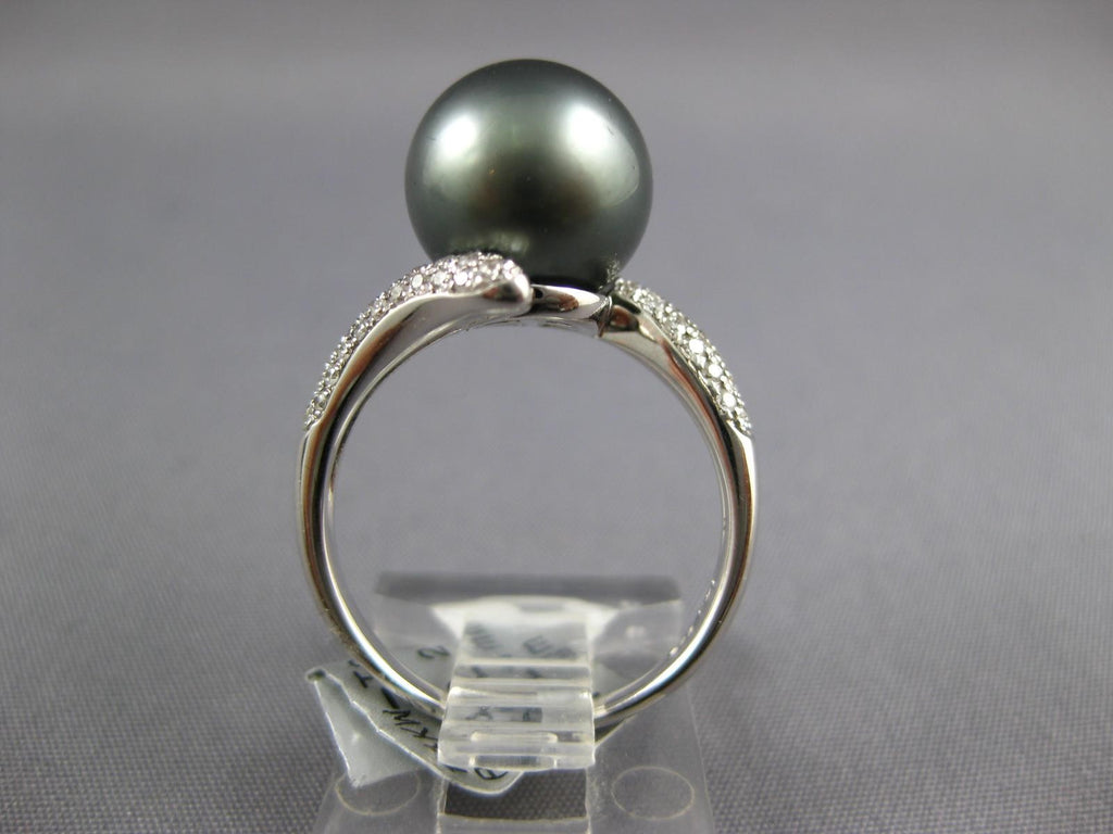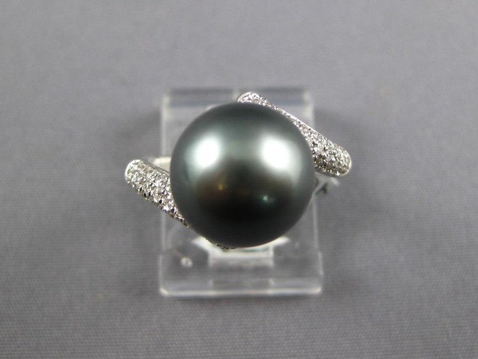 14KT WHITE GOLD LOVE RING. 3D CLASSIC CRISS CROSS DESIGN. DIAMONDS ARE F/G COLOR, VSSI CLARITY .22 CARATS. FEATURES 11mm WIDE AAA TAHITIAN PEARL. RING MEASURES 12mm WIDE. RING SIZE 6.5. CAN BE SIZED BY OUR MASTER JEWELER UPON REQUEST. WRITTEN APPRAISAL AVAILABLE. COMES IN A PRESENTABLE GIFT BOX.
