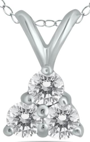 .23CT DIAMOND 14KT WHITE GOLD ROUND CLASSIC 3 STONE TRIANGULAR TRILLION PENDANT