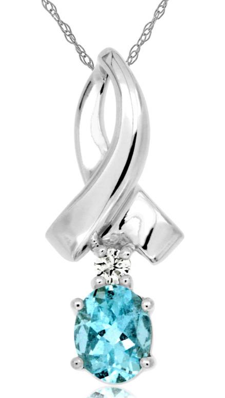 0.33CT DIAMOND & AAA AQUAMARINE 14K WHITE GOLD OVAL & ROUND LOVE FLOATING PENDANT