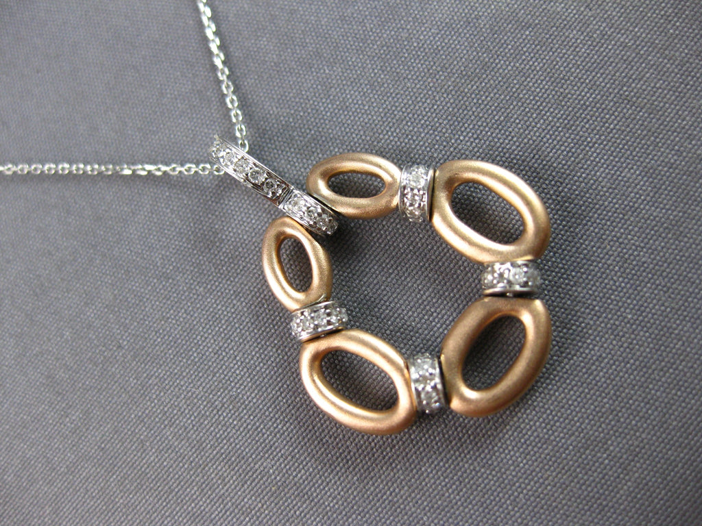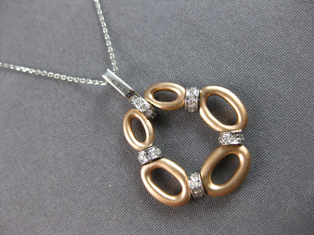 0.35CT DIAMOND 14K WHITE & ROSE GOLD 3D FLOWER MULTI OVAL FLOATING PENDANT #27903